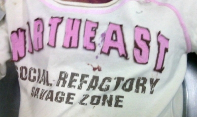 Була одягнена у джинси синього кольору, кофту білого кольору з рожевим написом «NIRTHEAST», різнокольоровий ремінь, білі кросівки, блакитний бюстгальтер, чорні труси.