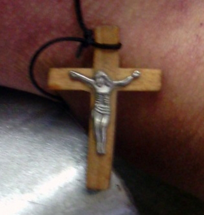 На правій руці - кільце у вигляді годинника з металу сірого кольору, на лівій руці - кільце з металу білого кольору з написом «Спаси и сохрани», сережки з металу жовтого кольору, запальничку жовтого кольору, дерев’яний хрестик на чорній нитці.