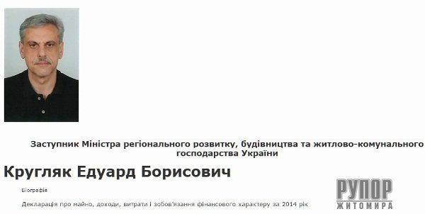 Депутата Житомирської міської ради Едуарда Кругляка Яценюк призначив заступником міністра регіонального розвитку, будівництва та житлово-комунального господарства України. Як повідомляє