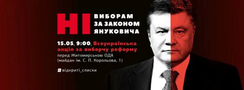 15 травня о 9:00 на Майдані імені С.П. Корольова в Житомирі відбудеться Всеукраїнська акція на підтримку виборчої реформи.