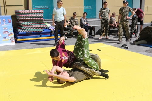 Сьогодні, 1 червня, з нагоди Дня захисту дітей на Михайлівській демонструють бойові мистецтва.