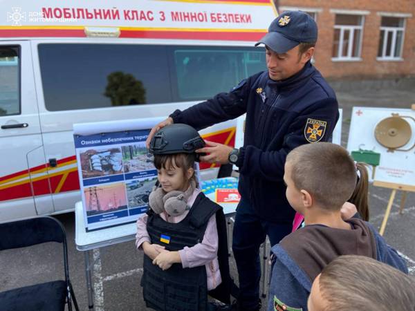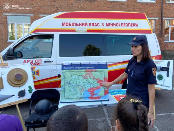 20 вересня рятувальники та патрульні поліцейські завітали до учнів початкових класів житомирського ліцею №20, аби навчити малечу правилам безпеки. До проведення заходу був залучений мобільний клас з мінної безпеки.