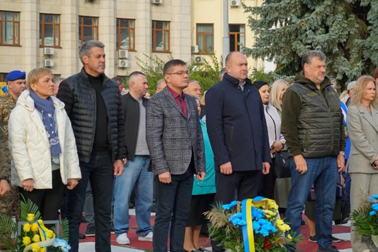 Далі урочистості продовжилися на майдані Перемоги біля памʼятного знака «Захисникам України у війні з російським агресором». Тут відбулася урочиста церемонія нагородження тих, хто захищає незалежність нашої держави.