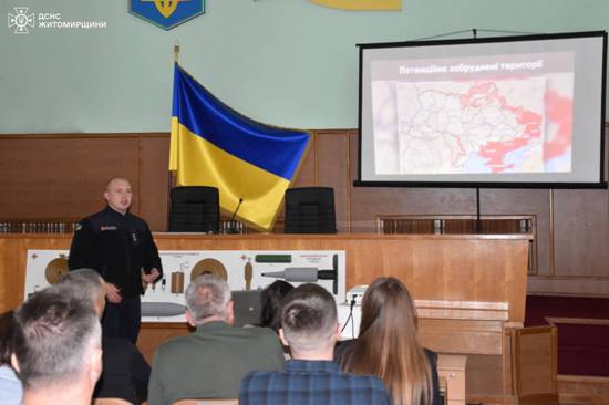 2 жовтня фахівці ДСНС провели навчання для працівників Житомирської районної державної адміністрації щодо алгоритму дій в умовах воєнного часу.