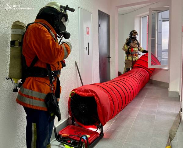 21 листопада о 10:00 по лінії “101” надійшло повідомлення про пожежу в 16-ти поверховому житловому будинку в м. Житомир. На місці було встановлено, що загоряння сталося в одній із квартир на 15-му поверсі, з її вікон виходив дим та виднілося полум’я — за таким задумом сьогодні житомирські рятувальники вдосконалювали професійні навички з ліквідації пожеж в багатоповерхівках під час пожежно-тактичних навчань.
