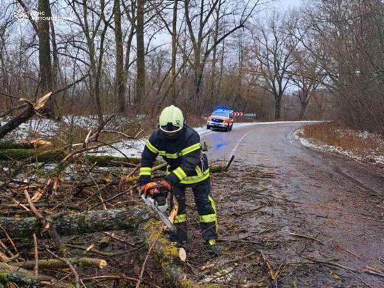 По прибуттю стало відомо, що через пориви вітру на проїжджу частину дороги впало дерево, чим заблокувало рух автівкам в обох напрямках. Рятувальники бензопилами розрізали його та прибрали на узбіччя.