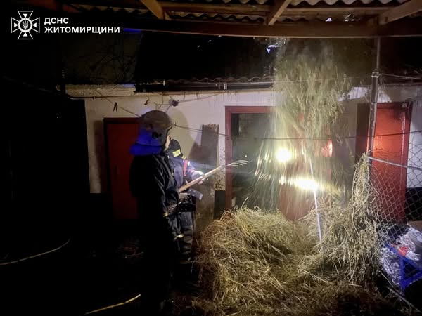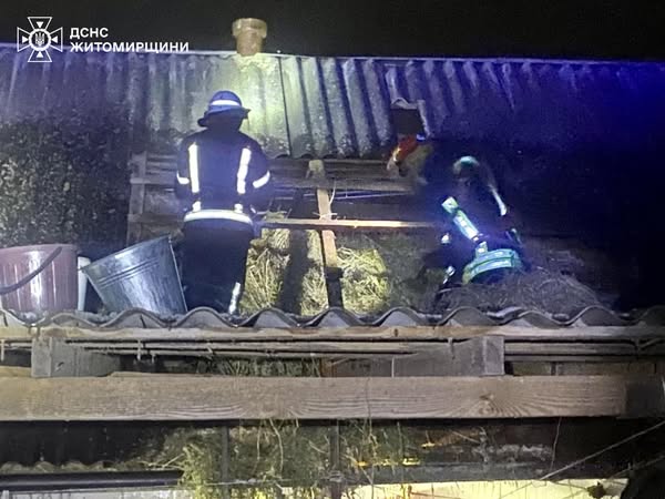 Так, ввечері у с. Хажин Бердичівського району рятувальники гасили пожежу в господарській будівлі. Горіла частина перекриття та покрівля. Менш ніж за годину пожежу вдалось ліквідовати. Вогонь знищив покрівлю на площі 15 кв.м, але завдяки вправності бійців ДСНС вдалося не допустити подальшого поширення полум’я.