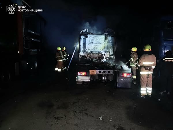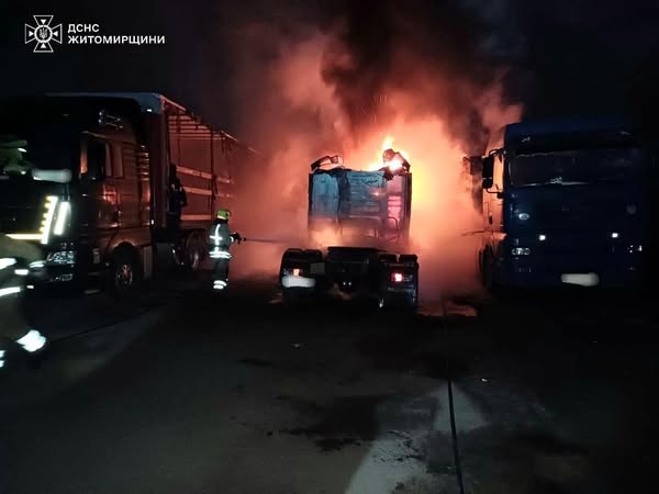 Силами бійців ДСНС о 20:43 пожежу ліквідовано. Вогонь устиг знищити зазначену вантажівку. Рятувальникам вдалося не допустити знищення сусідніх вантажівок, вони пошкоджені внаслідок події.