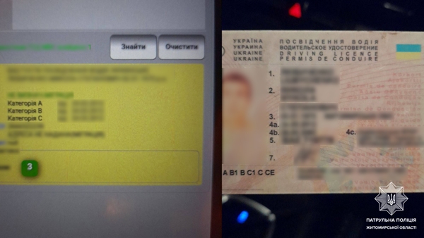 Крім того, посвідчення водія мало ознаки підробки, адже у базі даних зафіксовано лише три категорії на право керування, тоді як у пред’явленому документі зазначено сім.