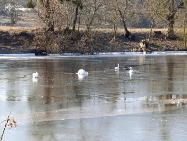 13 лютого о 10:40 до Служби порятунку «101» надійшло повідомлення від жителів с. Бистрі Житомирського району про те, що на річці Тетерів до криги примерзли 4 лебіді та не можуть звільнитись. Рятувальники дістались до птахів, розбили лід за допомогою багра та вивільнили їх з крижаної пастки. Лебіді при цьому не постраждали.