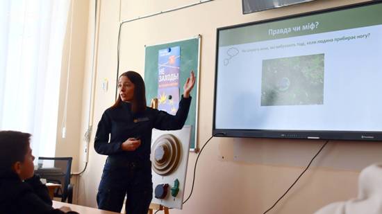 Школярі житомирського ліцею № 24 приймали днями у гостях рятувальників, які завітали до них із безпековим заходом. До проведення заходу залучався мобільний клас з мінної безпеки. Зустріч мала на меті навчити дітей правилам протимінної безпеки, Фахівчиня ДСНС нагадала школярам алгоритм дій при виявленні вибухонебезпечних предметів та розповіла за якими номерами телефонувати у разі виявлення таких знахідок. За допомогою макетів показала присутнім найпоширеніші вибухові пристрої, що дозволило їм краще зрозуміти як боєприпаси виглядають і чим відрізняються один від одного. Також фахівчиня звернула увагу слухачів на маркувальні знаки, якими позначають небезпечну ділянку, забруднену вибухонебезпечними предметами.