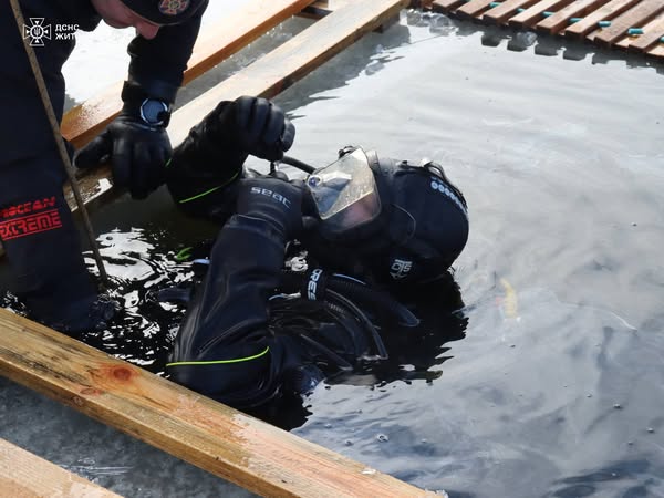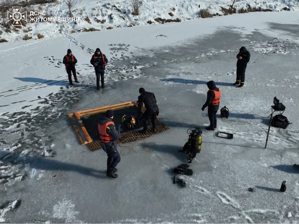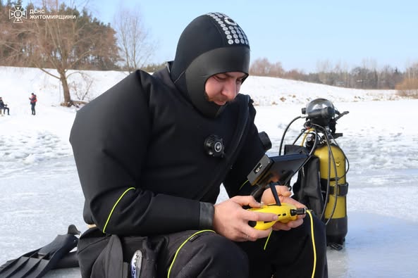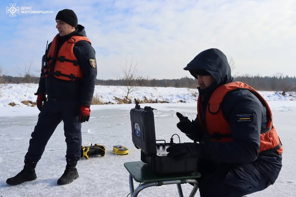 До проведення зазначених робіт сьогодні у Житомирському районі було залучено відділення підводного розмінування Мобільного рятувального центру швидкого реагування ДСНС України у складі 7 чоловік. За визначеними координатами водолази запускали підводні дрони.