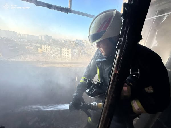 У Житомирі рятувальники ліквідували пожежу у багатоповерхівці, що сталася вранці 25 лютого на балконі 8 поверху. Власниця квартири на момент прибуття рятувальників вже чекала на сходовій клітині.