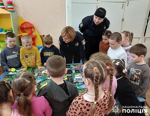 Під час заняття офіцерки сектору освітньої безпеки Бердичівського райвідділу розповіли дітям про значення дорожніх знаків, світлофора та основні правила переходу вулиці.