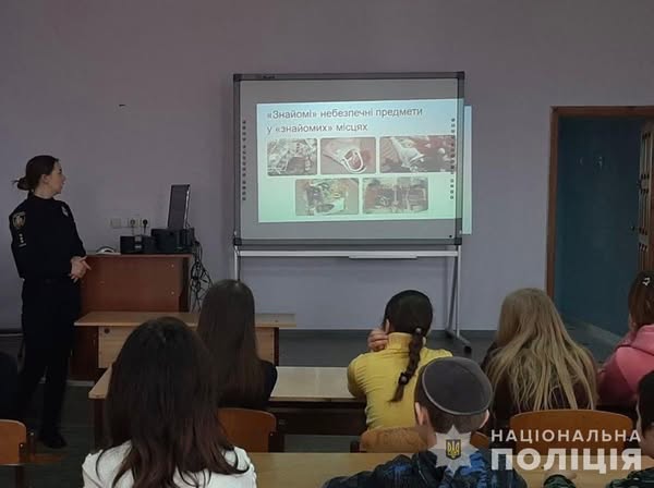 В одному із закладів освіти побувала ювенальна інспекторка Марина Костенко. Вона розповіла учасникам зустрічі про види небезпечних предметів, які, у зв’язку зі збройною агресією рф, можуть виявляти жителі країни, та продемонструвала їх зображення. Особливу увагу гостя зосередила на тому, що вибухівка може бути замаскованою у, здавалося б, звичайних побутових предметах, цікавих дітям (іграшки, гаджети, тощо…), тож необхідно виявляти обачність під час прогулянок та на шляху до ліцею.