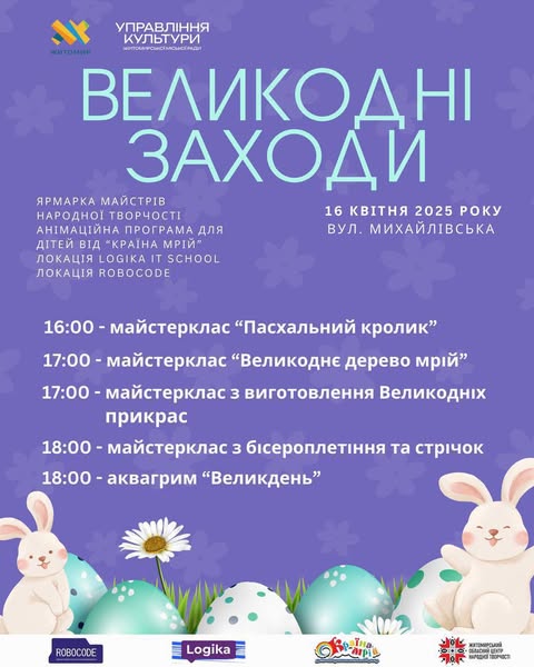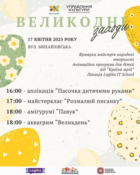Запрошуємо мешканців Житомирської громади на великодні привітання — серію теплих творчих заходів для дітей і дорослих!
