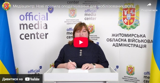 Нагадаємо, що крум цього про нові правила оподаткування для мобілізованих ФОП під час брифінгу розповіла в.о. заступника начальника Головного управління ДПС у Житомирській області Людмила Велика. Детальніше у відео.