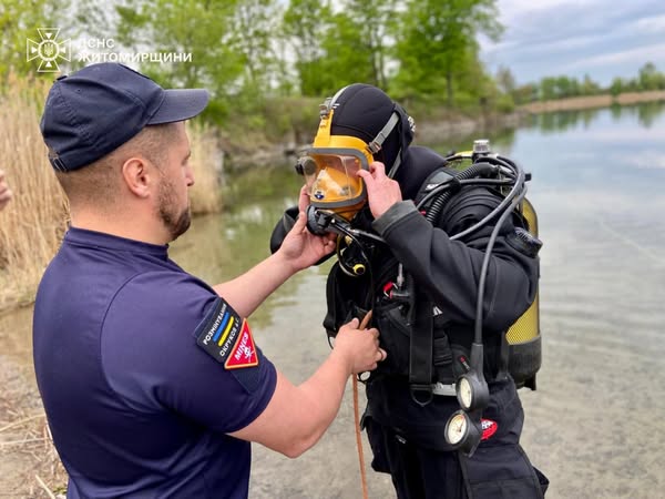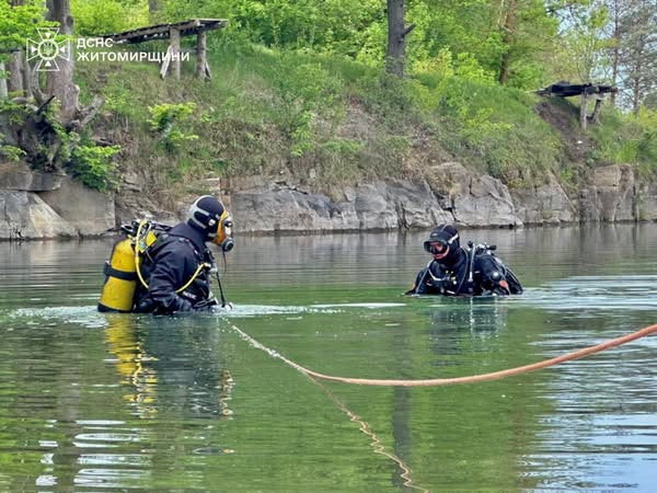 05 травня у Коростенському районі фахівцями відділення підводного розмінування Мобільного рятувального центру швидкого реагування ДСНС України у складі чотирьох осіб проведено обстеження водойми, де напередодні громадянин помітив підозрілі предмети.