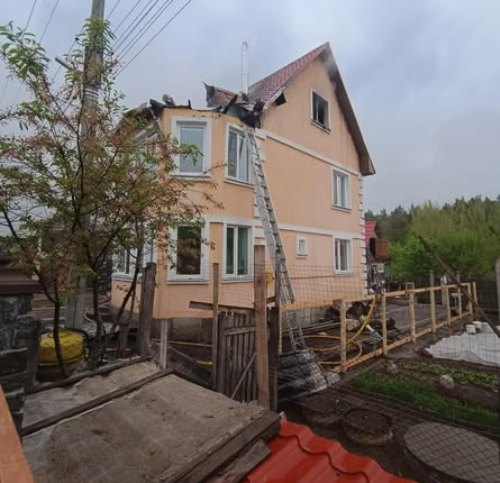 Внаслідок надзвичайної події вогнем знищено 30 кв.м покрівлі. Усі обставини наразі встановлюються фахівцями.