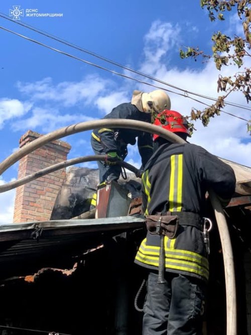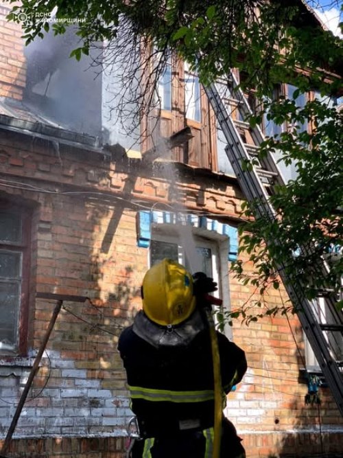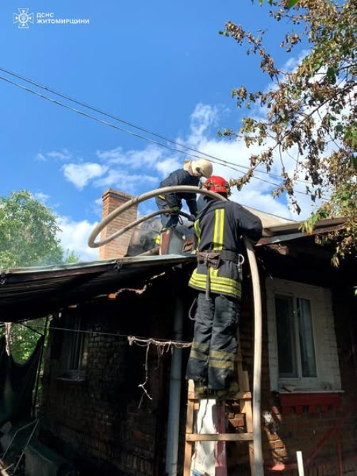 Учора вдень у Бердичеві рятувальники ліквідували пожежу в житловому будинку на 4-х господарів. Там горіли частина перекриття й покрівлі. Для оперативності гасіння було задіяно додаткову техніку. Пожежу повністю ліквідували за 1,5 години. На щастя, обійшлося без жертв і постраждалих.