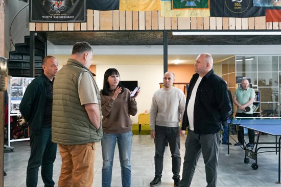 Окрему увагу приділили роботі ветеранського простору «Дім ветерана», який функціонує на базі центру. Тут ветерани, військові та їхні родини отримують безоплатну психологічну, юридичну й соціальну підтримку. Присутні поспілкувалися з координаторкою простору, керівницею громадської спілки «Дім ветерана» Юлією Толмачовою. Обговорили актуальні проблеми та шляхи їх розвʼязання.