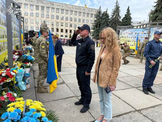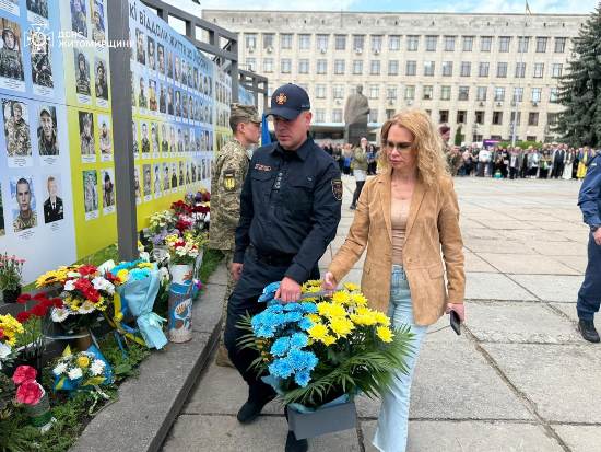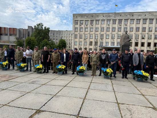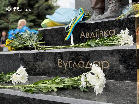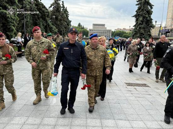 Начальник Головного управління ДСНС України у Житомирській області Дмитро Нікулеско разом із керівництвом області, представниками силових структур, військовими та громадськістю взяв участь у покладанні квітів до «Алеї слави героїв» та Пам’ятного знаку «Захисникам України у війні з російським агресором».