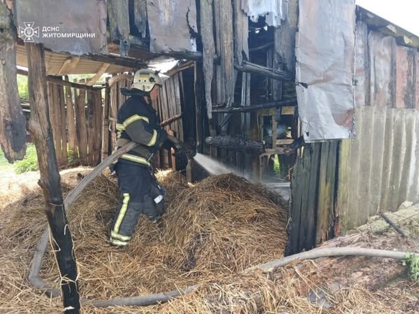 У першому випадку залучалися на гасіння господарчої будівлі у с. Некраші Житомирського району. Існувала загроза поширення полум’я на поруч розташований житловий будинок. Але бійцям ДСНС вдалося цьому запобігти та тим самим врятувати оселю.