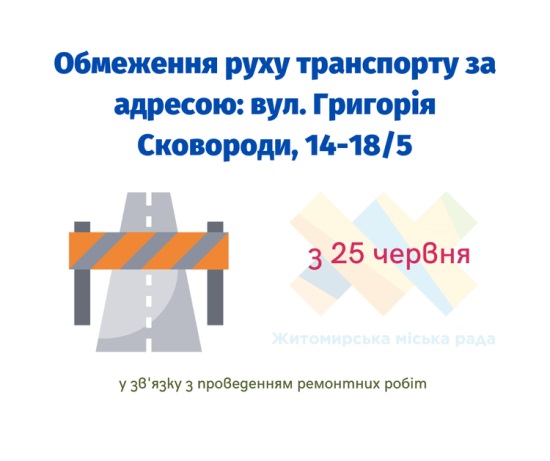 З 25 червня буде частково обмежено рух транспорту на проїжджій частині дороги за адресою: вул. Григорія Сковороди, 14-18/5.