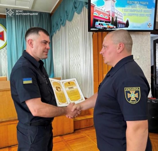 Почесним гостем заходу став заступник начальника Житомирської обласної військової адміністрації з питань взаємодії з правоохоронними органами Олександр Федько. Він високо оцінив мужність, самовідданість рятувальників та вручив подяки найкращим із них.