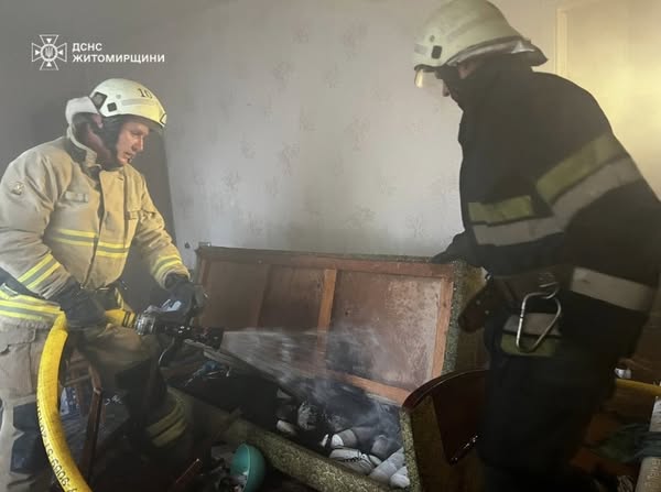 Сьогодні вдень у Звягелі під час пожежі у задимленій квартирі багатоповерхівки фахівці ДСНС врятували господарку. Жінка відчула їдкий запах диму, почала задихатися та втрачати свідомість. Вона дійшла до балконних дверей та відчинила їх. В цей момент до задимленої кімнати зайшли рятувальники та вивели постраждалу на свіже повітря. Жінку передали медикам, які її і госпіталізували.