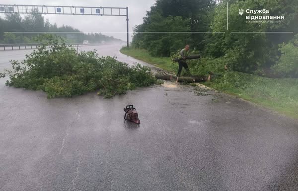 На території Житомирщини негода вирувала упродовж кількох минулих днів. Внаслідок злив та шквального вітру на проїзну частину доріг державного значення падали дерева та гілки.
