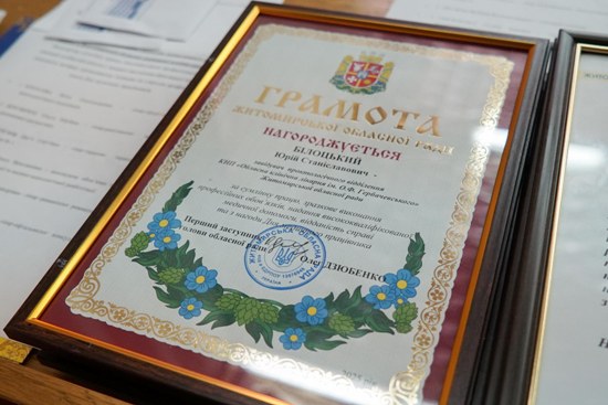 З нагоди Дня медичного працівника за багаторічну сумлінну працю, високий рівень професіоналізму, значний особистий внесок у надання висококваліфікованої медичної допомоги, активну громадянську позицію Почесною грамотою Житомирської обласної ради нагороджені: