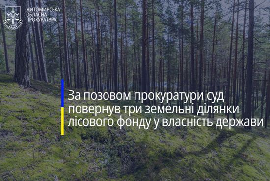 Прокуратурою встановлено, що у 2017 році наказами Головного управління Держгеокадастру в Житомирській області були затверджені проєкти землеустрою та передано у приватну власність трьом особам три земельні ділянки по 2 га кожна для ведення особистого селянського господарства. Після оформлення права власності всі ділянки були продані одній особі.