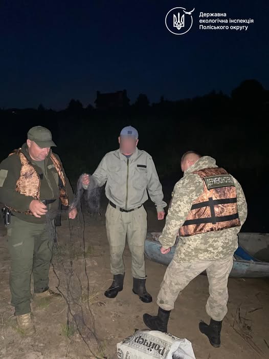 11 серпня 2025 року під час рейдового заходу на річці Тетерів (с. Тетерівка Житомирського району) державні інспектори з охорони навколишнього природного середовища Поліського округу виявили двох громадян, які за допомогою риболовних сіток ловили рибу.