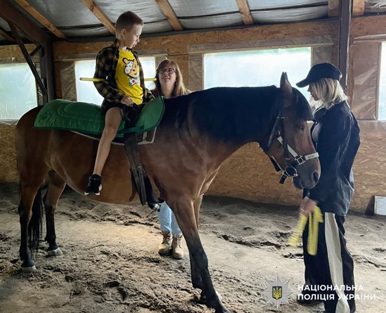 Днями фахівці відділу психологічного забезпечення ГУНП в області влаштували для 9-річного Назарчика зустріч у центрі іпотерапії та оздоровчої верхової їзди «Берегиня Полісся». Захід відбувся в межах роботи «Пункту психологічних практик».