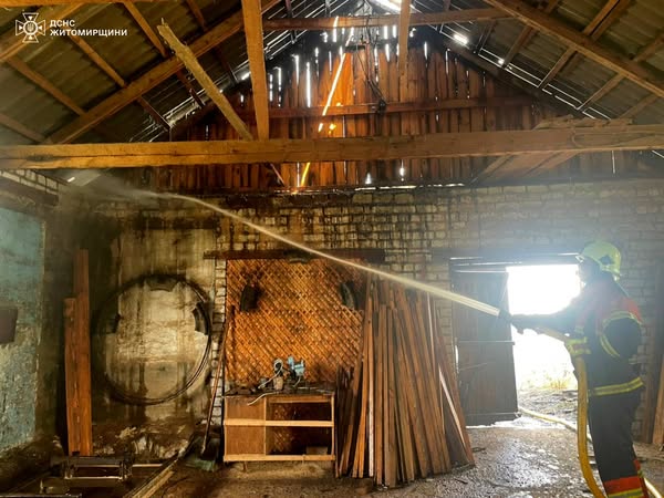 У селищі Хорошів Житомирського району сьогодні вдень сталося загоряння сухостою на площі 2 га, яке перекинулося на будівлю деревообробного цеху одного з підприємств.