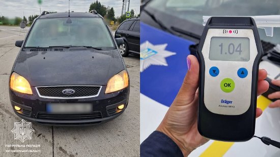 Спілкуючись з керманичем виявили ознаки алкогольного сп'яніння. Він погодився пройти освідування на місці. Результат позитивний — 1,04 проміле.