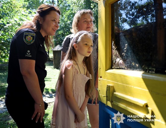 Працівники відділу організації соціальної роботи Управління кадрового забезпечення ГУНП в Житомирській області запросили дружину й доньку колеги, який віддав життя у протистоянні ворогу, провести день на бджолярській садибі «Бджоландія» у Чудодієво.