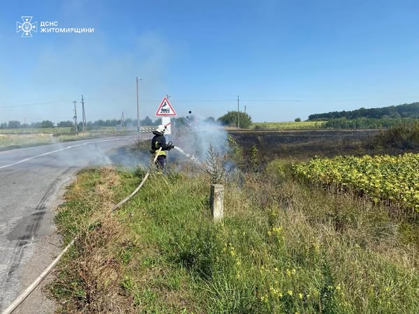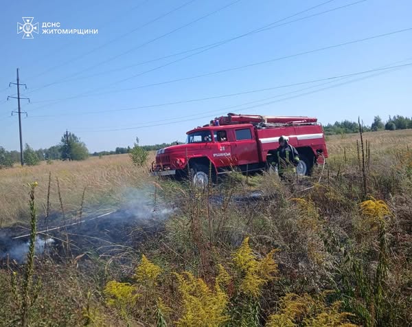 Три рази горіла суха рослинність в населених пунктах Житомирського та Бердичівського районів. Бійці ДСНС запобігли поширенню полум’я на більшу площу.