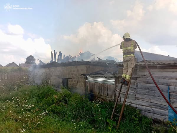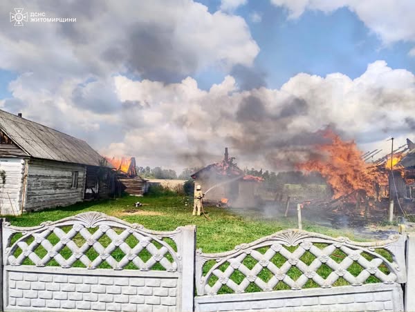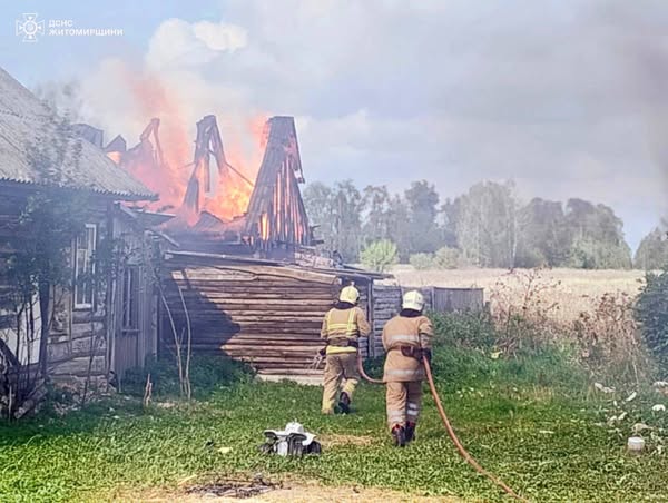 Учора в селі Жерев Народицької громади Коростенського району сталася пожежа в приватному будинку. Вогонь охопив дерев’яну оселю та встиг поширитися на дві такі ж господарчі будівлі. Існувала загроза перекидання полум’я на розташований поруч сусідський житловий будинок.
