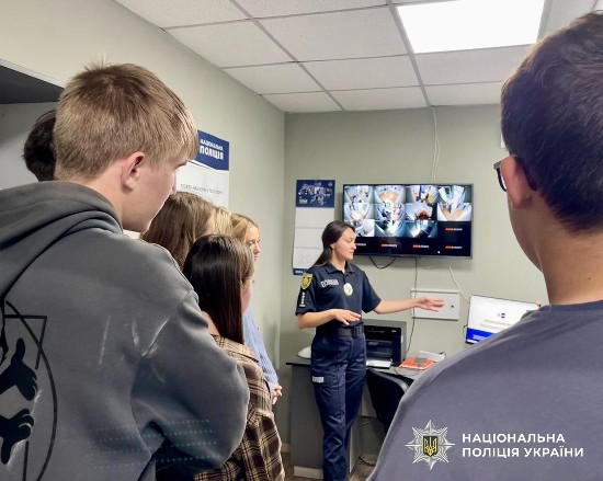 Інспекторка з дотримання прав людини Анжеліка Радзивіл розповіла 11-класникам про роботу чергової частини, діяльність підсистеми «Custody Records» та ознайомила з функціонуванням кожної кімнати окремо.