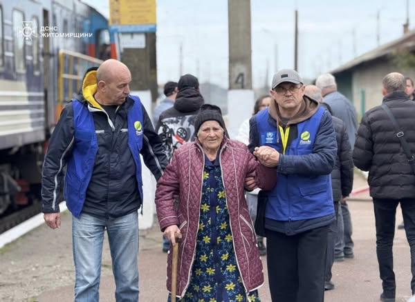 До Бердичева прибув евакуаційний потяг, яким із прифронтових територій евакуювали 30 людей похилого віку з інвалідністю — підопічних геріатричного пансіонату.