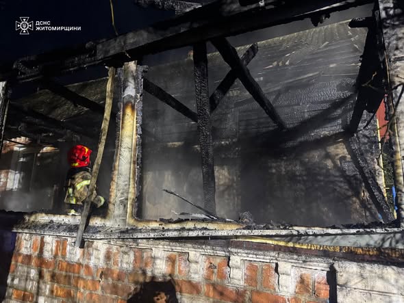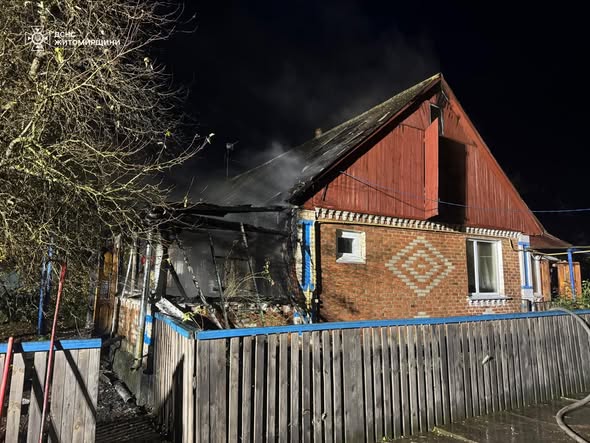 Сьогодні вранці у с. Врублівка Житомирського району рятувальники ДСНС прибули на виклик про пожежу в приватному житловому будинку. Осередок займання знаходився у веранді, де вогонь охопив домашні речі та перекинувся на шиферну покрівлю. Існувала загроза поширення полум’я всередину житлових приміщень.