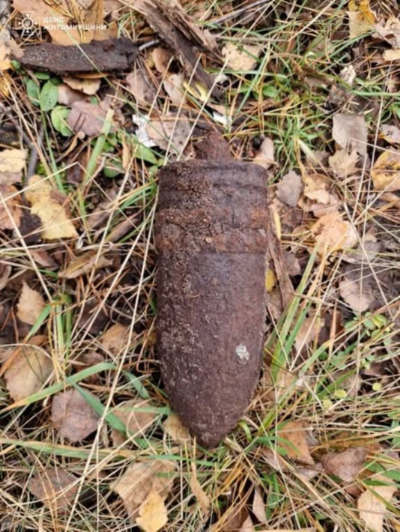 Поблизу села Вишевичі Радомишльської громади Житомирського району у лісі місцеві жителі натрапили на артилерійський снаряд часів Другої світової війни.