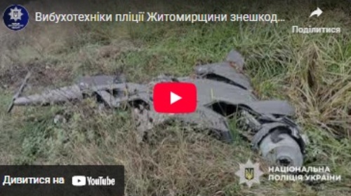 Водночас на Коростенщині фахівці знешкодили безпілотник типу «Герань-2» із нездетонованою бойовою частиною. На його крилах були закріплені дві протитанкові міни. Ще одну бойову частину дрона-камікадзе ліквідували вибухотехніки в Житомирському районі.