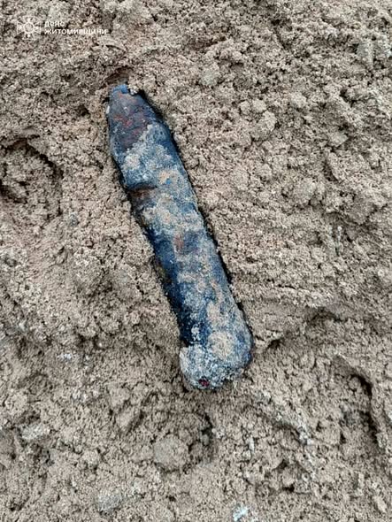 Сьогодні піротехніки ДСНС Житомирщини знешкодили артилерійський снаряд часів Другої світової війни. Небезпечний предмет виявили напередодні громадяни, які копали траншею для прокладання трубопроводу у Бердичеві. Небезпечну знахідку сапери вивезли до спеціально відведеного місця та знищили шляхом контрольованого підриву.