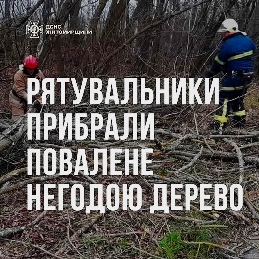 Вчора вдень фахівці ДСНС залучалися на проведення аварійно-рятувальних робіт поблизу с. Волосів Бердичівського району. Там внаслідок негоди дерево впало на дорогу, перекривши рух автотранспорту в одному напрямку. На щастя, під час інциденту ніхто не постраждав!