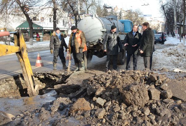 На місце аварії виїхали міський голова Володимир Дебой, заступник міського голови Володимир Кропивницький та директор КП «Житомирводоканал».