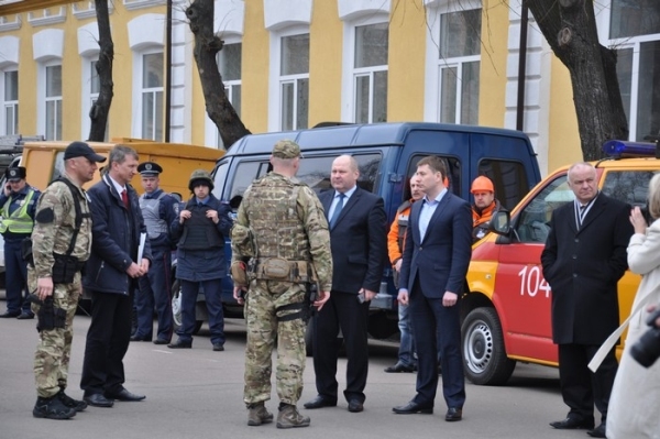 27 березня в Житомирській облдержадміністрації пройшло навчання зі звільнення заручників, захоплених терористами в адміністративній будівлі, та евакуацією працівників.