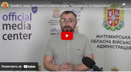 Сьогодні на майданчику офіційного медіацентру Житомирської обласної військової адміністрації продовжуємо інформувати вас про діяльність робочої групи «Прозорість та підзвітність».
